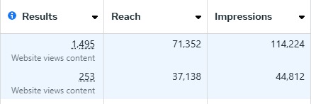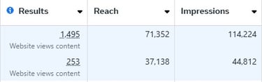 Results (Website Views): 1,495 (First Ad), 253 (Second Ad)
