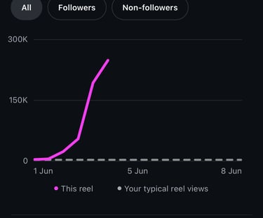 View Growth Pattern: Explosive spike from June 2 to June 4, reaching close to 300K views in just 3 days.